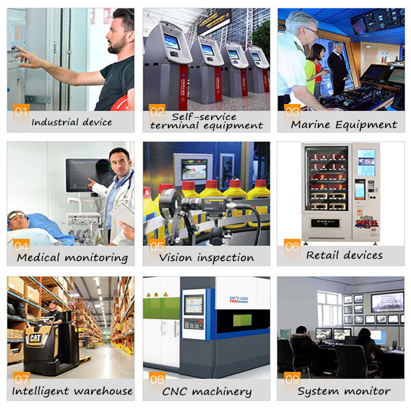 Die Steuerung in einem Gerät wird hauptsächlich in Fabrikautomations- und Steuertafeln (HMI), Test- und Messgeräten, Transportsystemen (Displays im Fahrzeug), Kiosken & POS-Systeme (robuste Umgebungen), landwirtschaftliche und bauliche Maschinen, Prozesssteuerung, Überwachung verwendet.