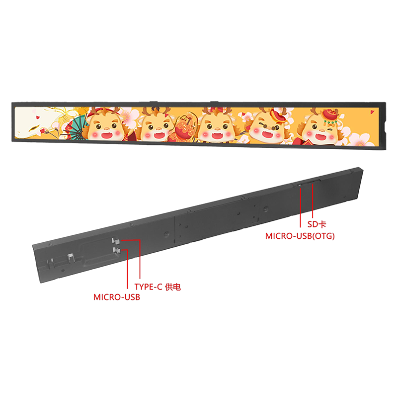 Der gestreckte Bar -Bildschirm verfügt über eine breite Palette von Anwendungsszenarien, die hauptsächlich für Einzelhandel, gewerbliche Werbung, öffentliche Verkehrsmittel, Supermärkte und Banken usw. verwendet werden.